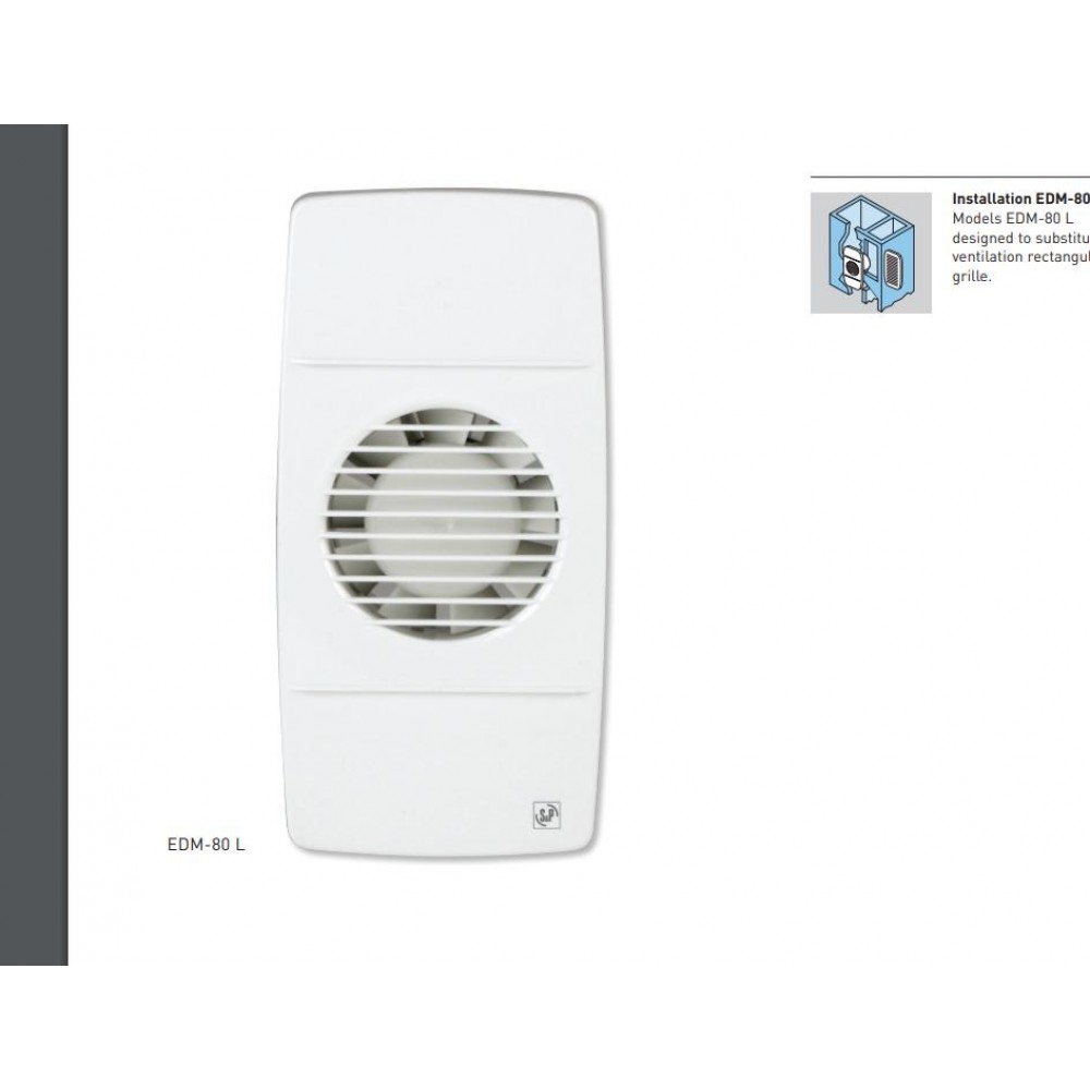 Вашему вниманию предлагаем популярный компактный вытяжной вентилятор серии EDM 80 N. · Вентиляторы EDM 80 производятся из высококачественного пластика и комплектуются однофазным электродвигателем (2303 В – 50 Гц), класс изоляции В, со встроенной термозащитой. Модель "Z" оснащается электродвигателем с повышенным сроком службы, укомплектованным шариковыми подшипниками. Максимальный расход воздуха составляет 80 м3/ч. Вентиляторы предназначены для подсоединения к воздуховодам диаметром 100 мм. Приборы имеют II класс электробезопасности, класс защиты IP-44, а рабочую температуру воздуха от 0 до +40 °С. Гарантия 12 месяцев. Модель: EDM 80 LR Назначение: В ванную, В туалет Макс. извлечение воздуха (м3/ч): 80